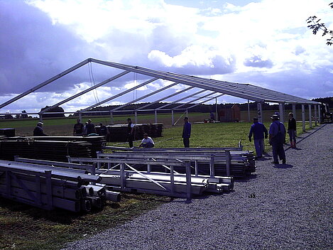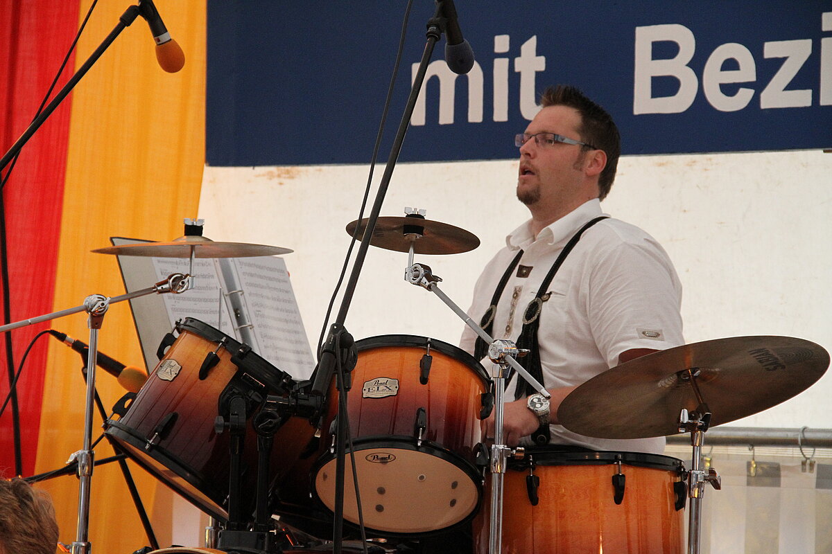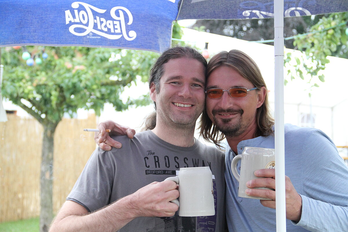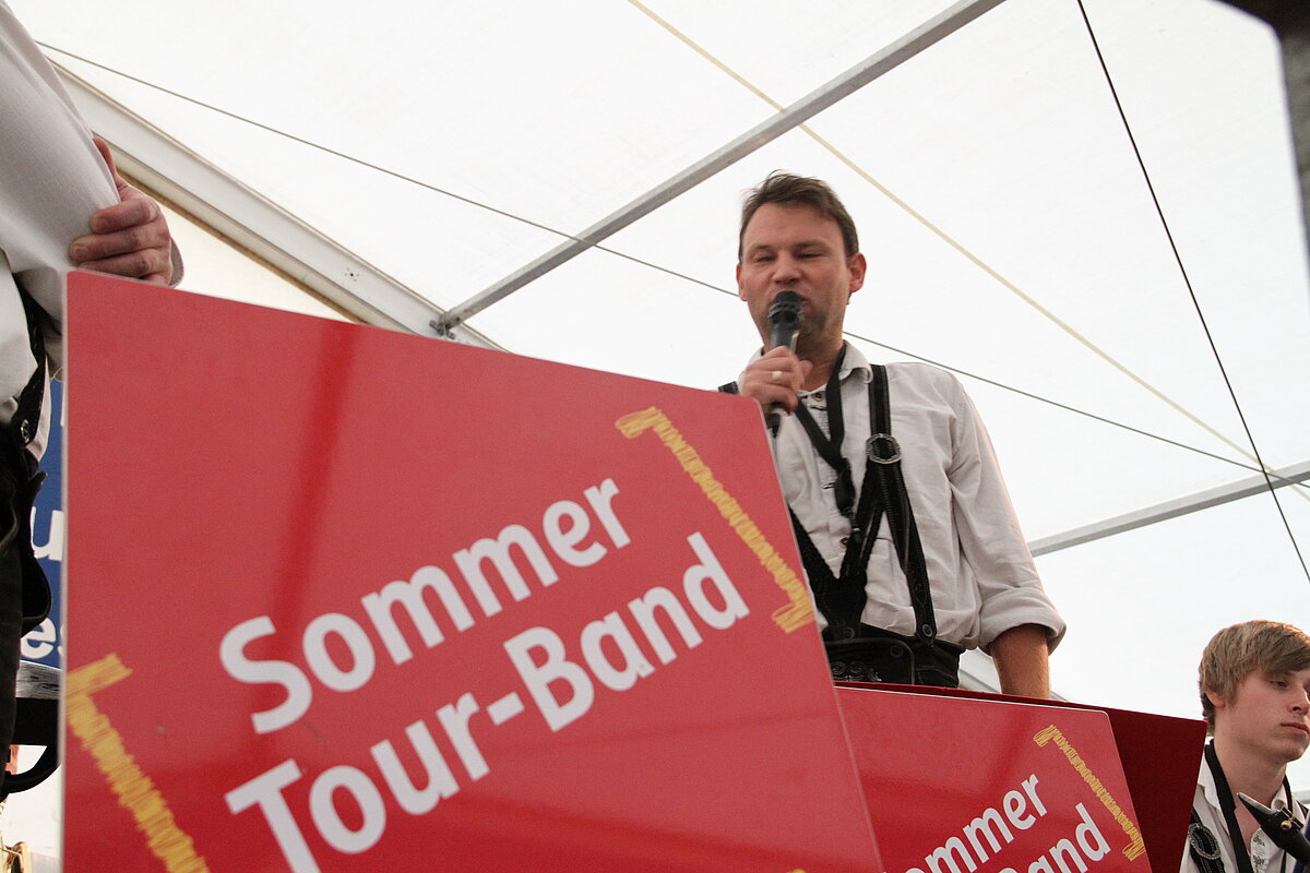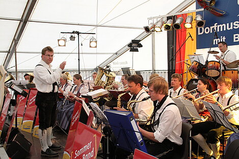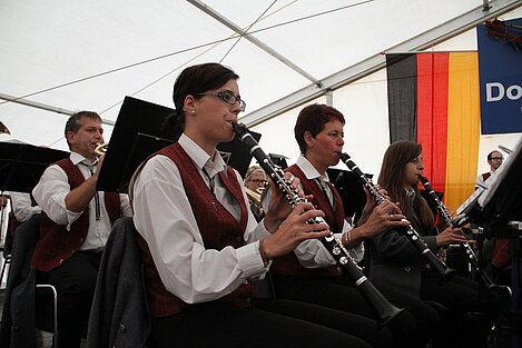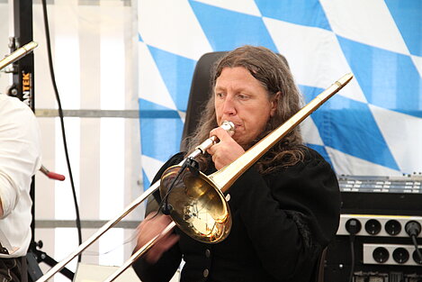 Zur Mittagspause der Kapelle verabschiedete sich der Spielmannszug "In Treue Fest" unter Leitung von Thomas Proest mit einem Ständchen. Danach machten sie sich mit mancher Träne im Auge auf den weiten Heimweg nach Senden/Westfalen. Am Nachmittag unterhielten mit abwechslungsreicher und toller Blasmusik die Gäste vom Musikverein Obersulmetingen (bei Laupheim).