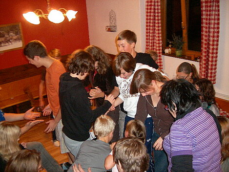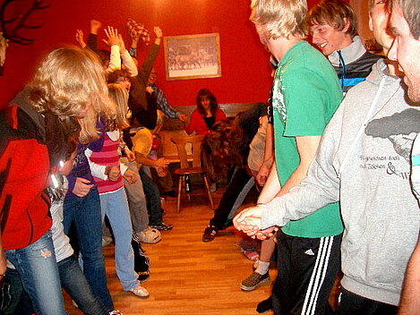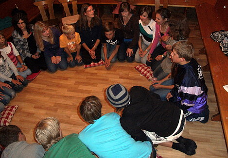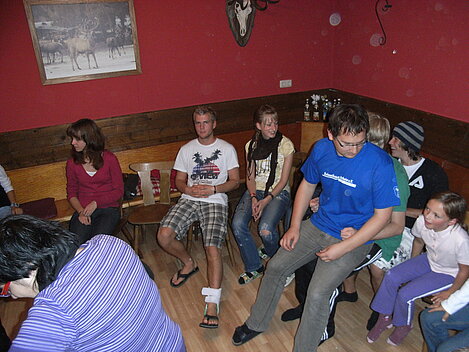 Nach dem Verteilen der Betten und dem Abendessen standen viele Kennenlern- und Gesellschaftsspiele, ausgedacht und organisiert von den Jugendvertreterinnen Sandra und Julia, auf dem Programm. Die Stimmung dabei war so gut, dass einigen die angeordnete Bettruhe zu früh war.