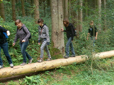 Am Samstag wanderte die muntere Gruppe bei schönem, aber kalten Wetter den Karl-Hirnbeinweg, ein Erlebnispfad für Jugendliche, entlang. Nach 13 km Wandern hatten alle einen Bärenhunger und so war es allen recht, dass es Pommes und Gegrilltes zum Abendessen gab. Nachdem die Gruppe gestärkt war, versammelte sich die gesamte Mannschaft erneut um Tischtennis, Fußball oder Gesellschaftsspiele zu spielen.