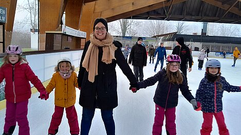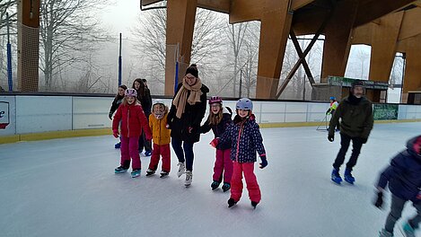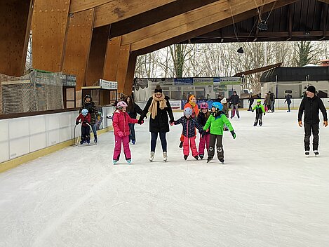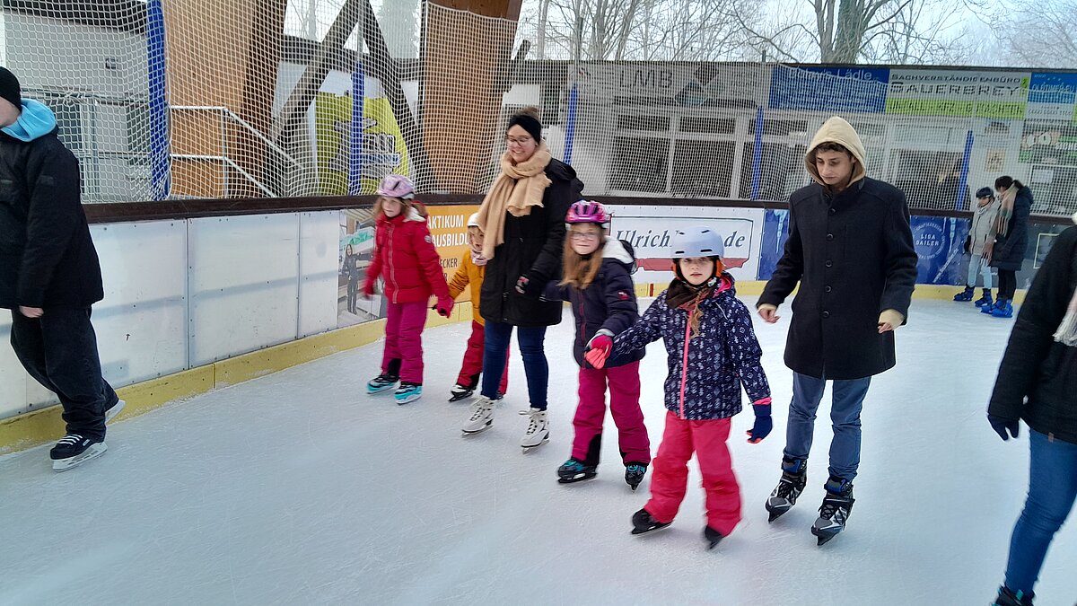 Gemeinsam flitzen wir über das Eis. Zum Teil noch etwas wackelig auf den Füßen fuhren wir unsere Runden. Dabei spielten wir Fango und übten neue Tricks. Um den kalten Temperaturen stand zu halten, wärmten wir uns bei Keksen mit Kinderpunsch. Es gab viele Gespräche und es wurde viel gelacht.