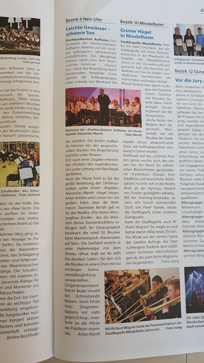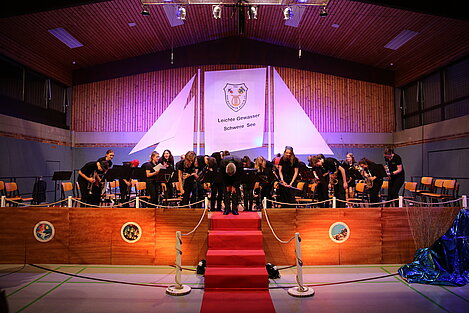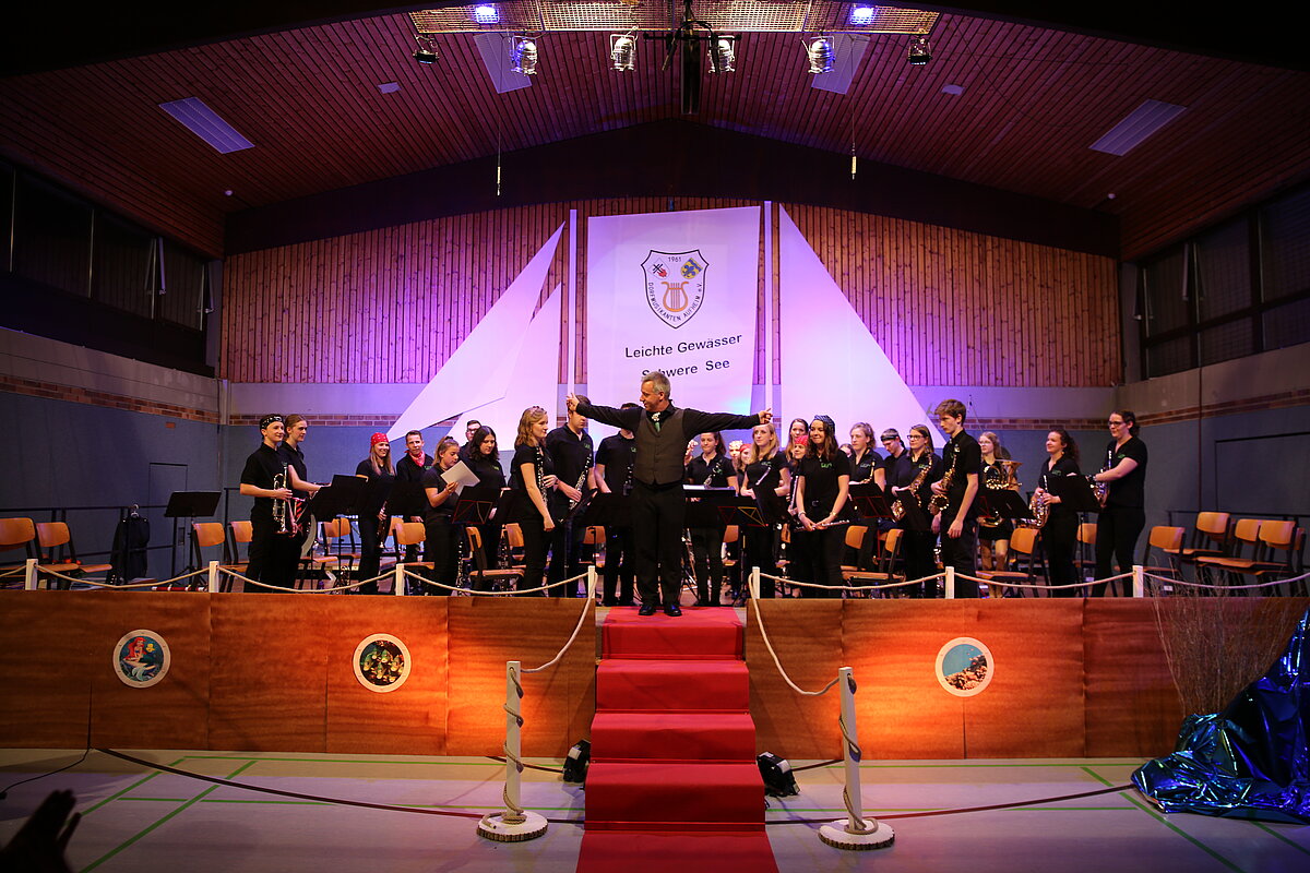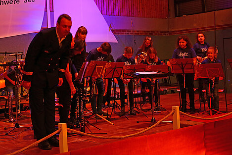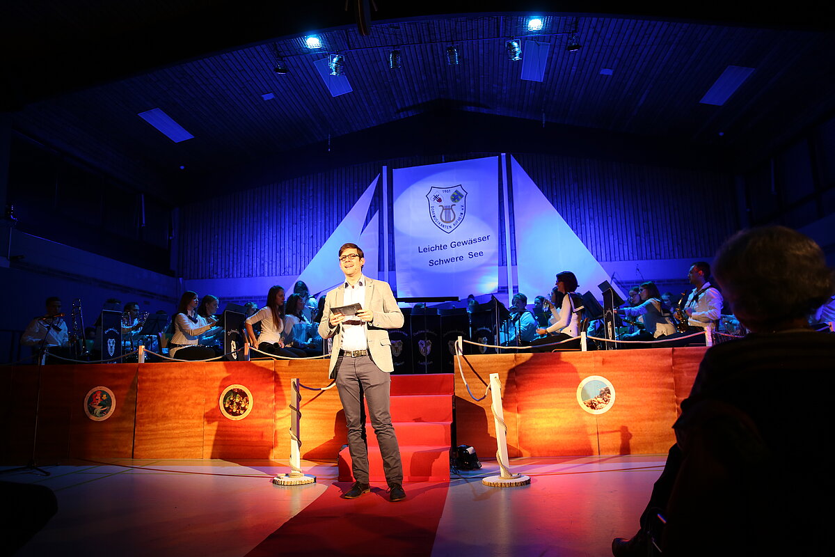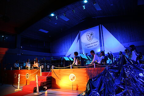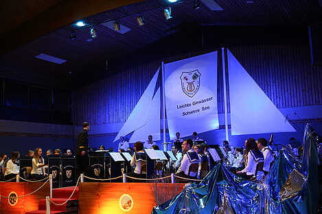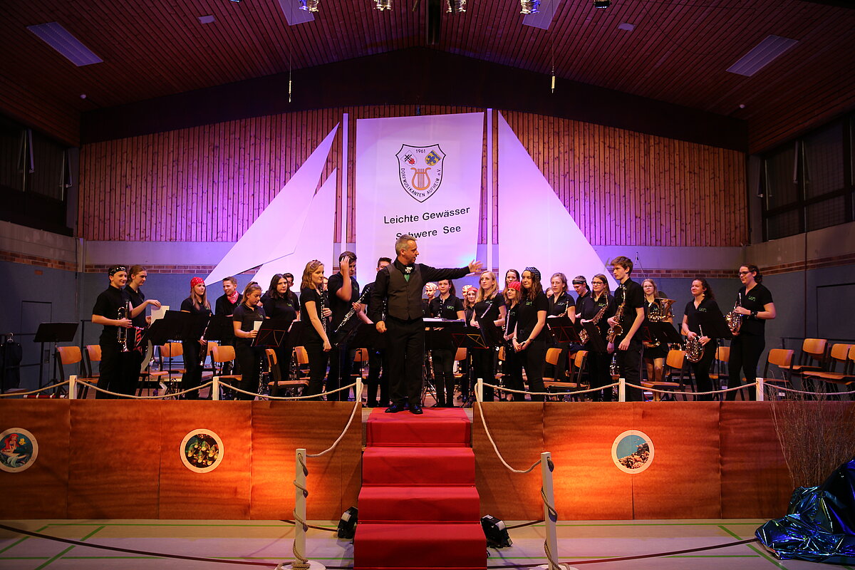 In See gestochen war zuerst die Anfängergruppe unter Dirigent Bernhard Ott, die ihr Potenzial als musikalische Zukunft der Dorfmusikanten wieder unter Beweis stellte. Mit dem gewohnten Schwung übernahm dann Rani Rezek mit seinem Jugendorchester Wita die Bühne, die fleißige Helfer für den Konzertabend in ein stattliches Schiff verwandelt hatten. Die Nachwuchsmusiker schlugen gekonnt den Bogen vom Strauß-Walzer „An der schönen blauen Donau“ zur Filmmusik des Blockbusters „Fluch der Karibik“.