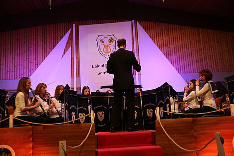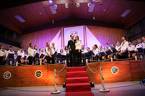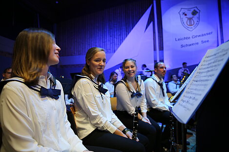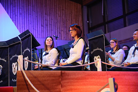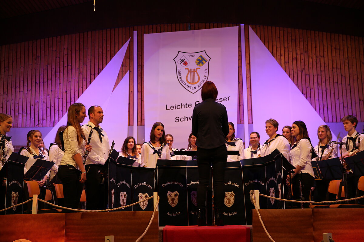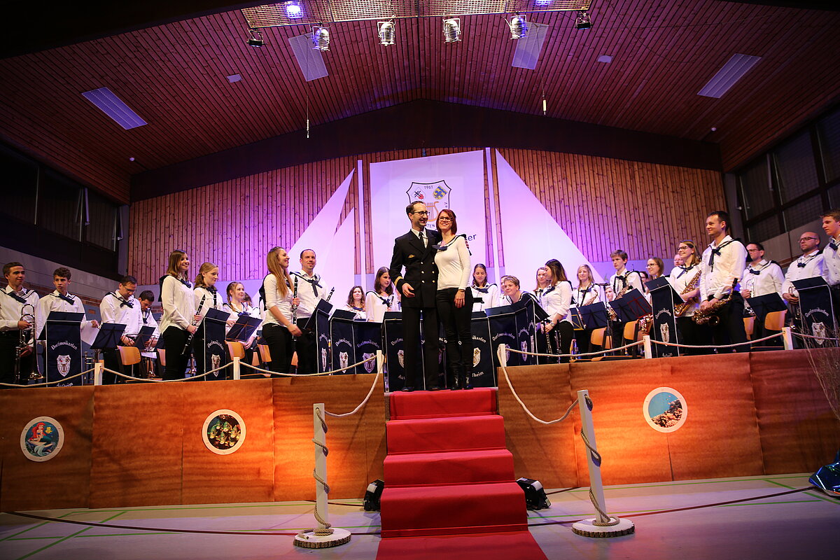 Beim Auftritt der Dorfmusikanten standen dann abwechselnd zwei Kapitäne auf der Brücke: Dirigent Alexander Menth und seine frischgebackene Kollegin Beate Unseld. Den entsprechenden Kurs hat die Querflötistin der Dorfmusikanten kürzlich mit sehr gutem Erfolg abgeschlossen.