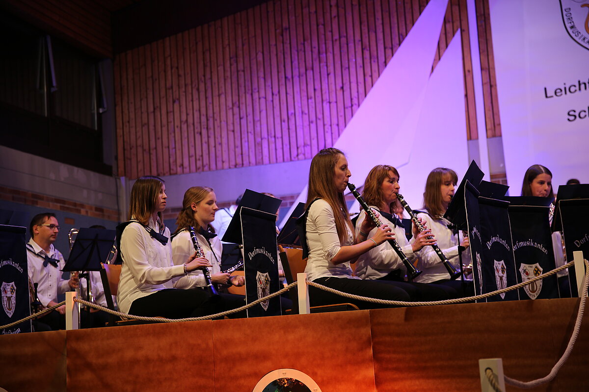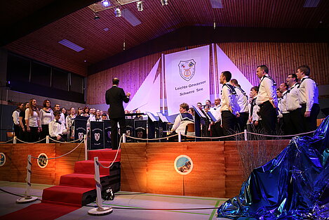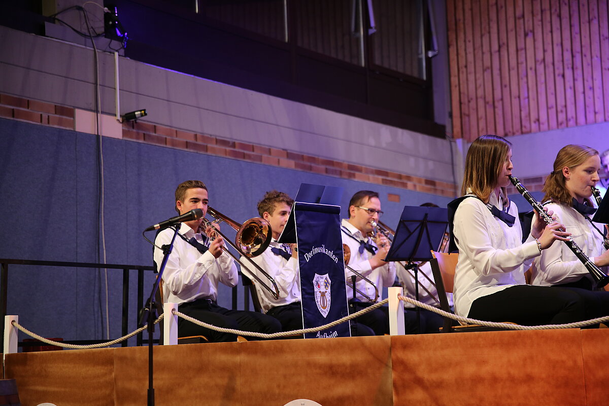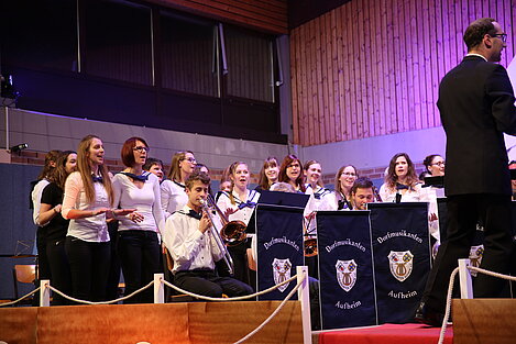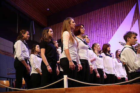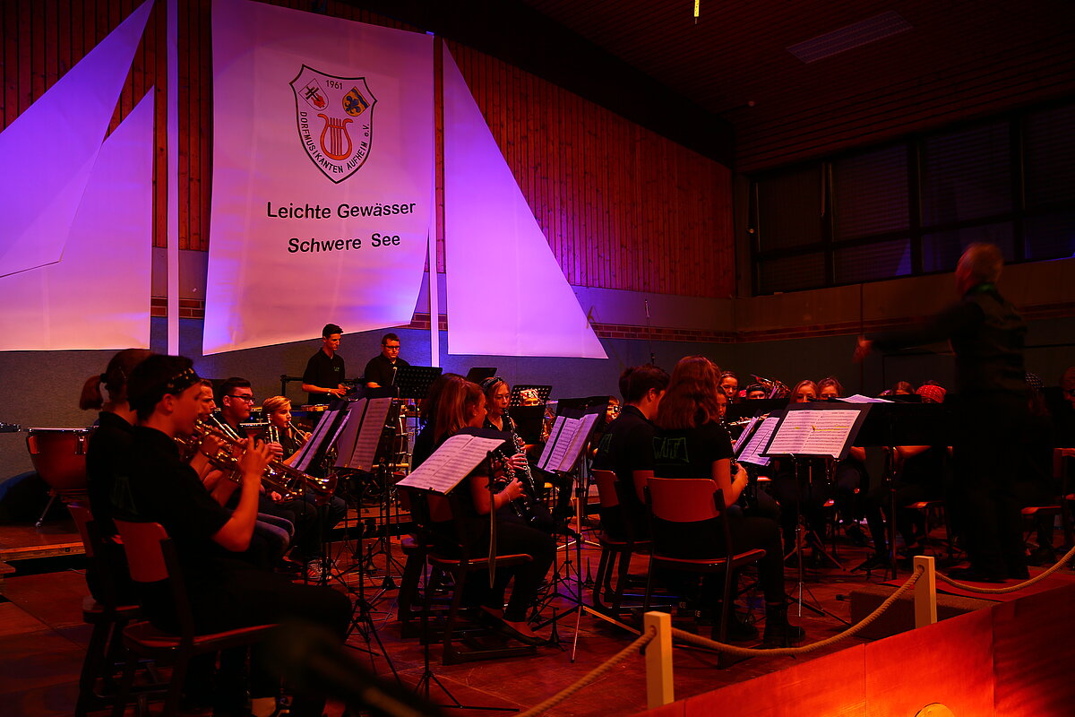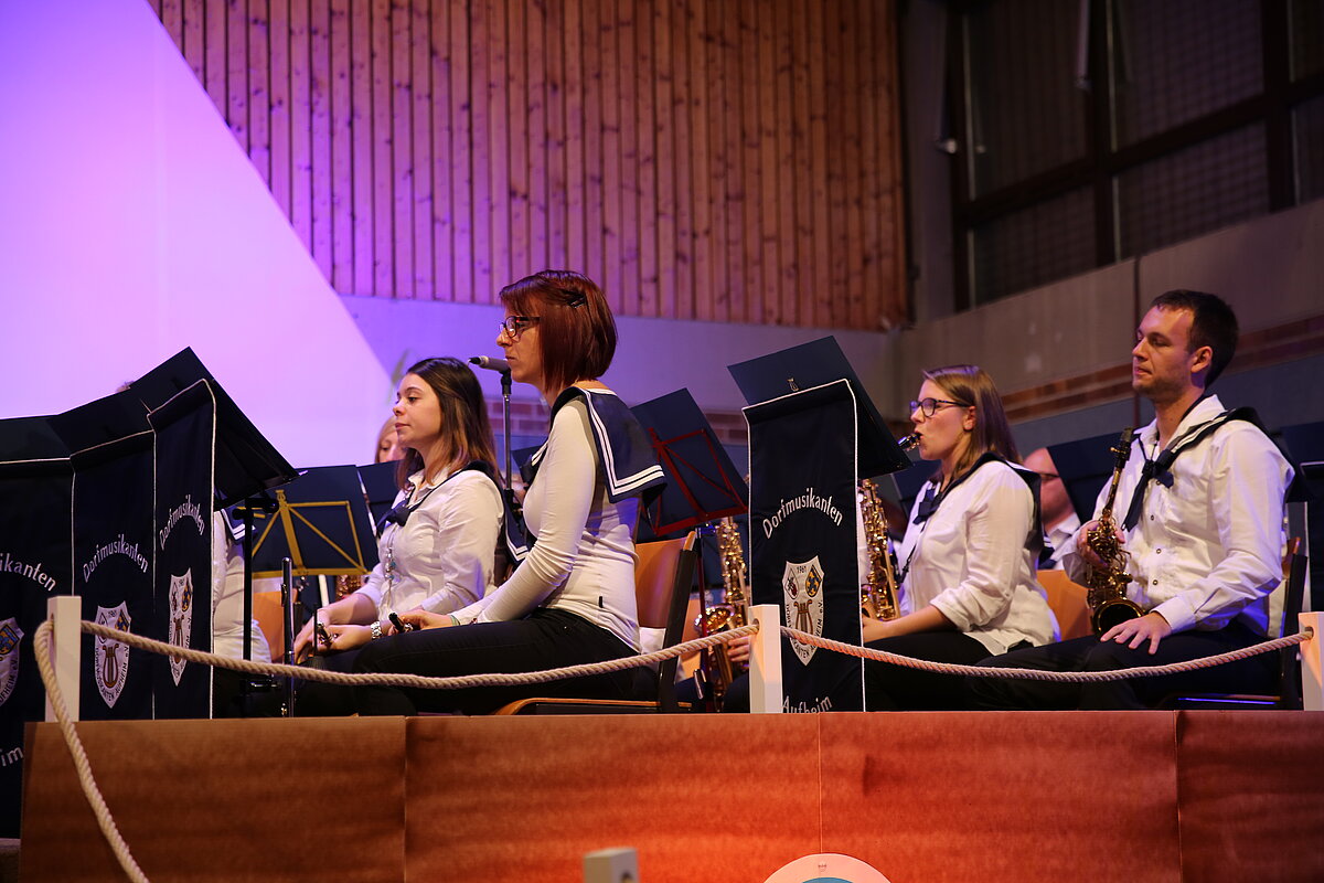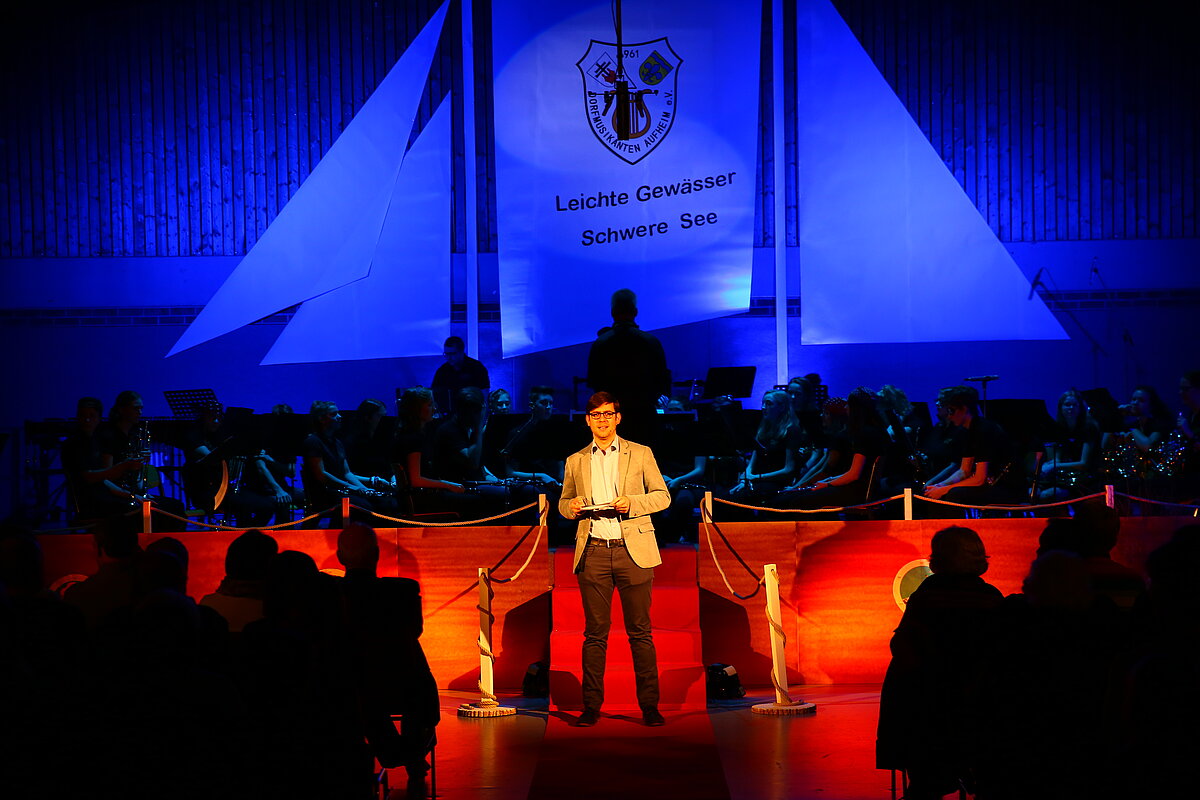 So endete die Fahrt „durch leichte Gewässer und schwere See“, so das Motto des Abends, in einer Hafenkneipe, mit dem Shanty „What Shall We Do with the Drunken Sailor“, für den sich die Musiker in einen stimmgewaltigen Chor mit nur minimaler Instrumentalbegleitung verwandelten. Schon zuvor beim Marinemarsch „Kameraden auf See“ hatten die Dorfmusikanten mit einer Gesangseinlage geglänzt.
