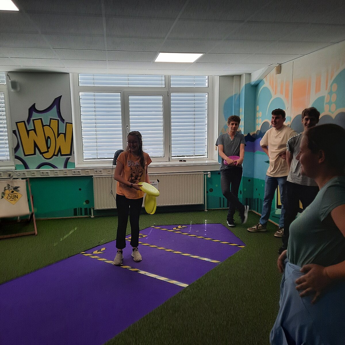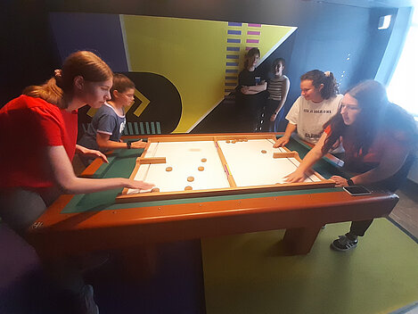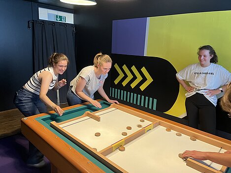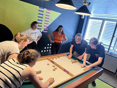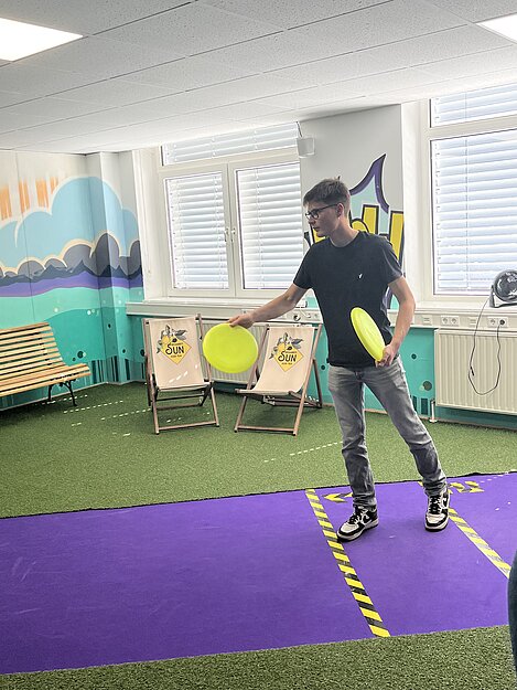 Das Face Off bietet spannende Teamspiele, die an das TV-Format "Schlag den Star" angelehnt sind. Unsere Jugendlichen wurden in vier Teams aufgeteilt und traten in verschiedenen Wettkämpfen gegeneinander an, darunter ein klassisches Quiz, Frisbeewerfen, Balancieren und Tischkicker.