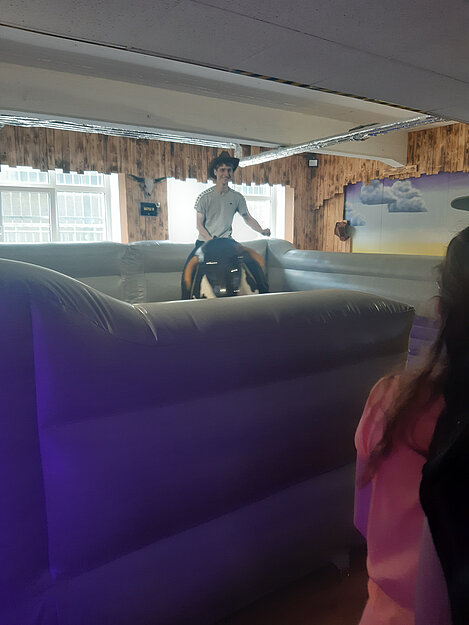 Das Highlight des Tages war das Bullenreiten. In echter Cowboy-Manier versuchten die Jugendlichen, so lange wie möglich auf dem mechanischen Bullen zu bleiben. Dabei feuerten sie sich gegenseitig lautstark an. Jeder gab sein Bestes, um die längste Zeit oben zu bleiben.