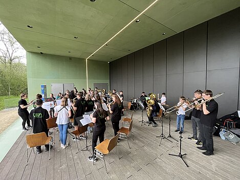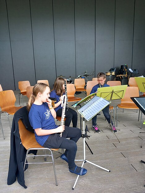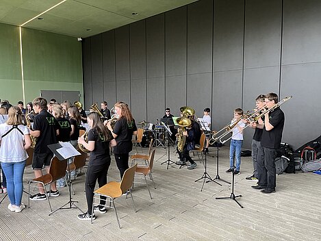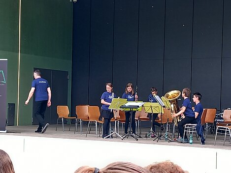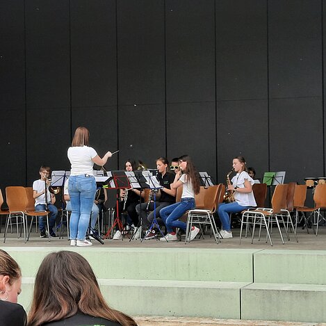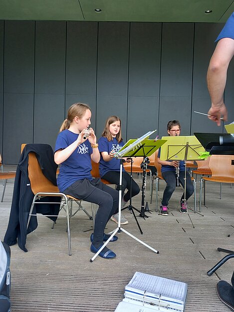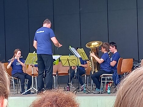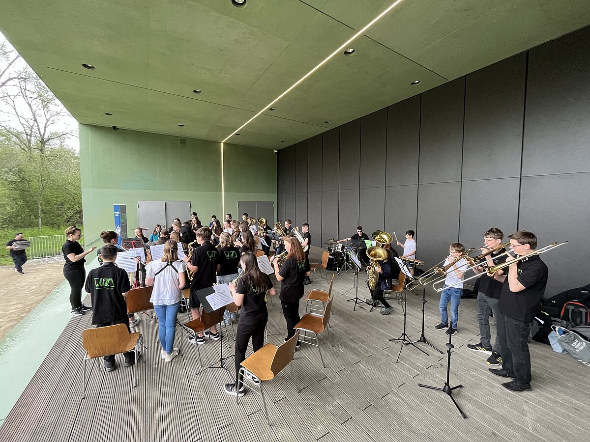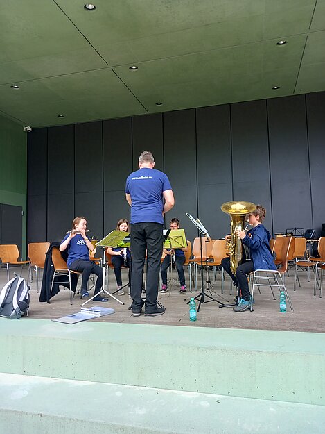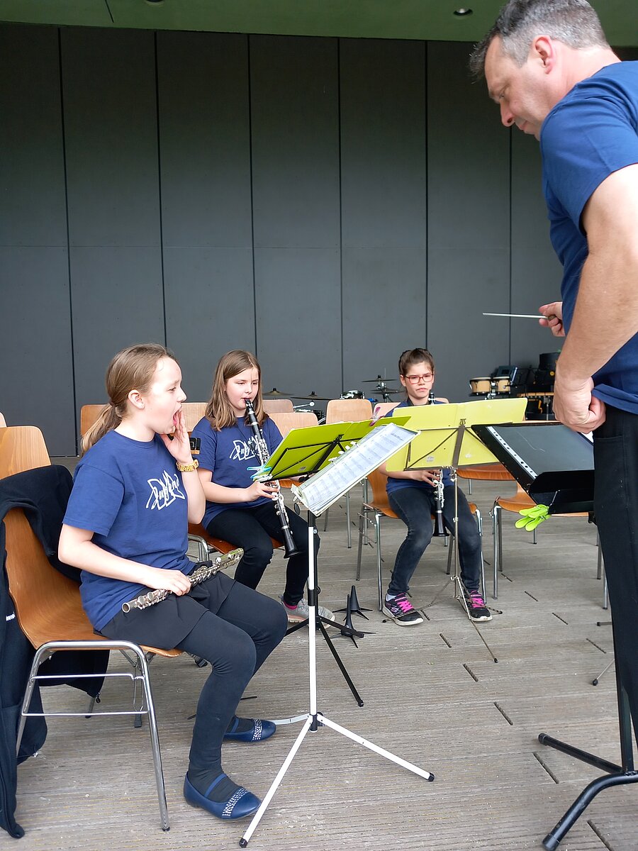 Unsere Anfängergruppe präsentierte sich hierbei mit einem tollen und abwechslungsreichen Programm. Trotz des aufkommenden Donners während dem Auftritt der Notenflöhe, konnten die jungen Musiker das Publikum begeistern. Auch die Wita zeigte ihr Können mit traditioneller und moderner Blasmusik. Dies zeigte sich am Publikum, das trotz dem strömenden Regen auf eine Zugabe nicht verzichten wollte. Die drei Orchester spielten gemeinsam den bekannten Song „Smoke on the Water“ und zeigten damit zu was für einer tollen Leistung schon die jüngsten Musiker fähig sind.