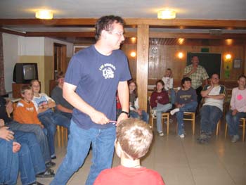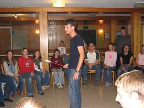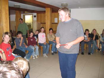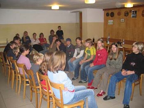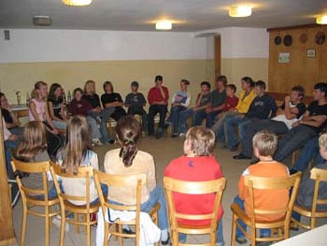 Bereits eine halbe Stunde vor der geplanten Abfahrt nach Immenstadt kündigte sich das Wochenende an. Die ersten Kinder und Jugendlichen warteten bereits aufgeregt bis endlich die Betreuer mit ihren Autos erschienen. So war die Abfahrt pünktlich und die Fahrt nach Immenstadt für alle kurzweilig. Pläne schmieden für den Abend, neugierige Fragen nach dem Programm und viele andere Dinge waren Gesprächsthema. Während nach der Ankunft um das beste Zimmer und das bequemste Bett bei der Zimmerverteilung gerungen wurde, machten sich die Küchenhelfer unter dem Küchenchef Georg Trunk an die Zubereitung des Abendessens. Abends gab es für alle lustige Spiele unter Anleitung von unseren Jugendvertreterinnen Kathy und Steffi. Klein und groß verbrachten einen schönen ersten Abend und an schlafen gehen wollte niemand gerne denken.