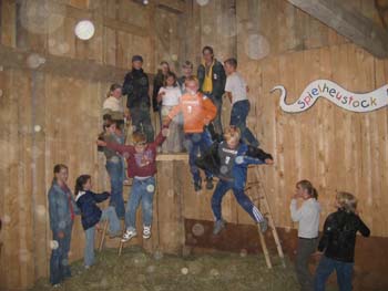 Für den nächsten Tag hatten unsere Jugendleiter einen Ausflug ins Bergbauernmuseum Immenstadt-Diepold geplant. Vor der Abfahrt war freilich noch viel Zeit für Tischtennis, Tischfußball und Bewegung auf dem Spielplatz oder rund um das Haus. Im Museum gab es dann aber auch einiges interessantes zu sehen und zu hören. Und auszuprobieren. So war der Sprung in den Heuhaufen ein Highlight bei der Führung. Auf der Bergbauernalm im Museum gab es dann ein zünftiges Vesper. Nach einer kurzen Wanderung ging es dann wieder zurück zu den vielen Spielmöglichkeiten in unserem Schulandheim am Ufer des Alpsees. Nach dem Spaghettiessen und dem gemeinsamen Abwasch brachten neue Gruppenspiele neuen Spaß. Am nächsten Morgen stand vor der Abfahrt dann noch Hausputz auf dem Programm. Alle halfen mit so dass gegen 13Uhr vierzig Kinder, Jugendliche und Erwachsene glücklich und erschöpft wieder in Aufheim ankamen. Danke dem Hauptorganisator Thomas Kuschel für die schönen Tage.