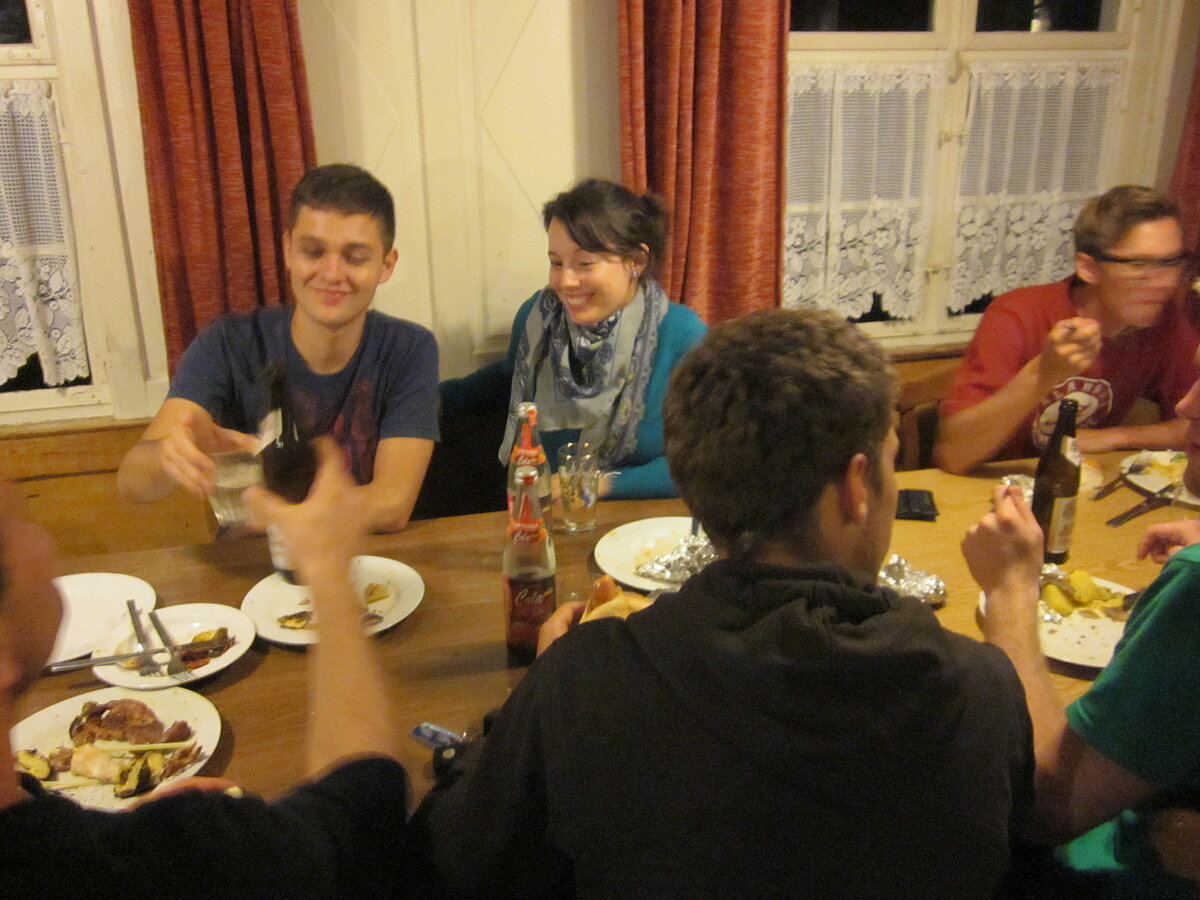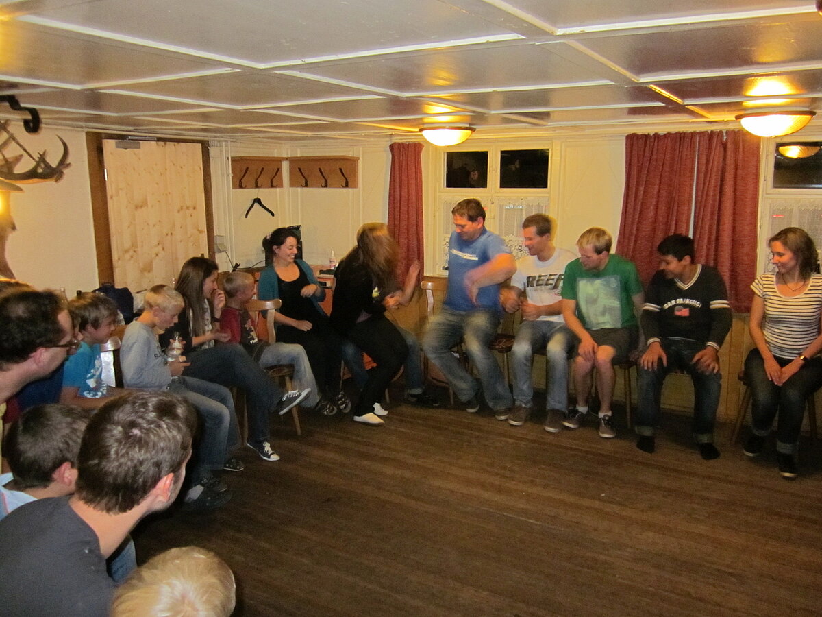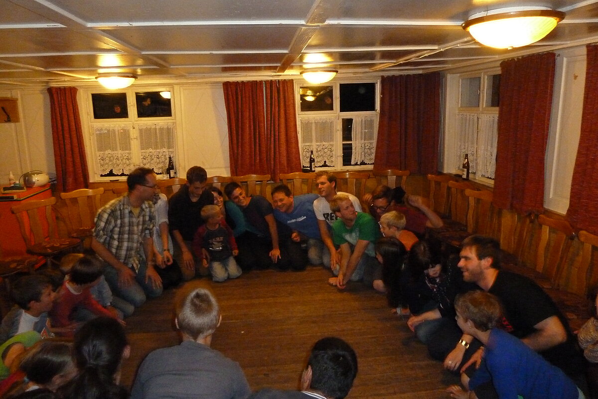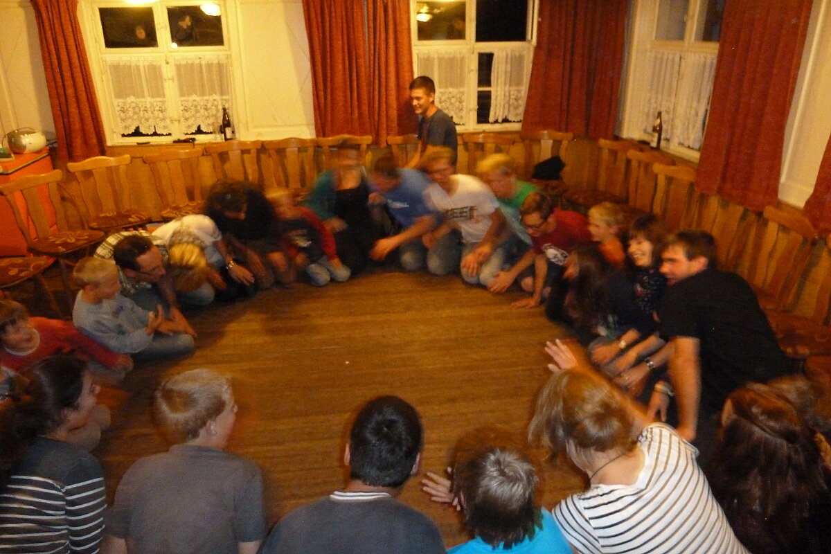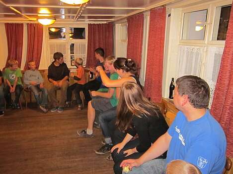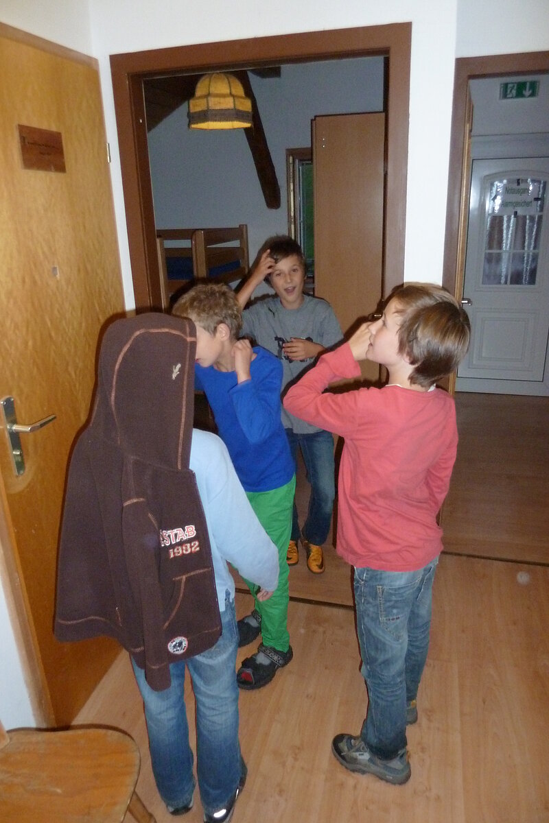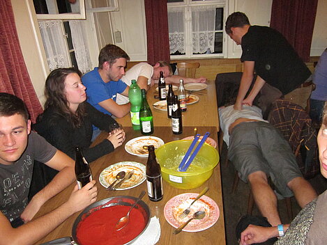 Während nach der Ankunft in den oberen Stockwerken und ums Haus herum sich eingelebt und gespielt wurde, begannen in der Küche sogleich die Vorbereitungen fürs Abendessen. Der erste Abend stand ganz im Zeichen des gegenseitigen Kennenlernens. Mit lustigen Spielen war sich bald niemand mehr fremd.