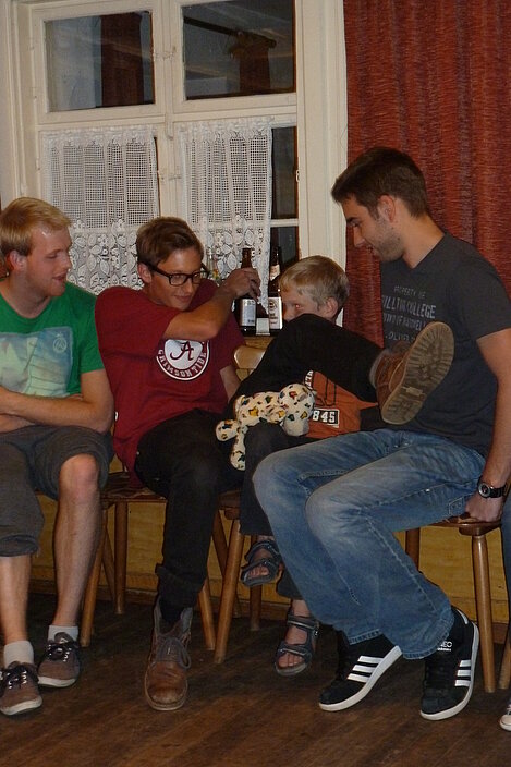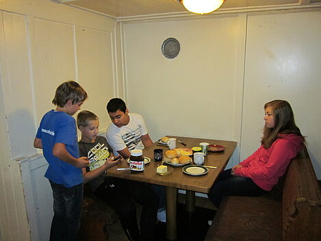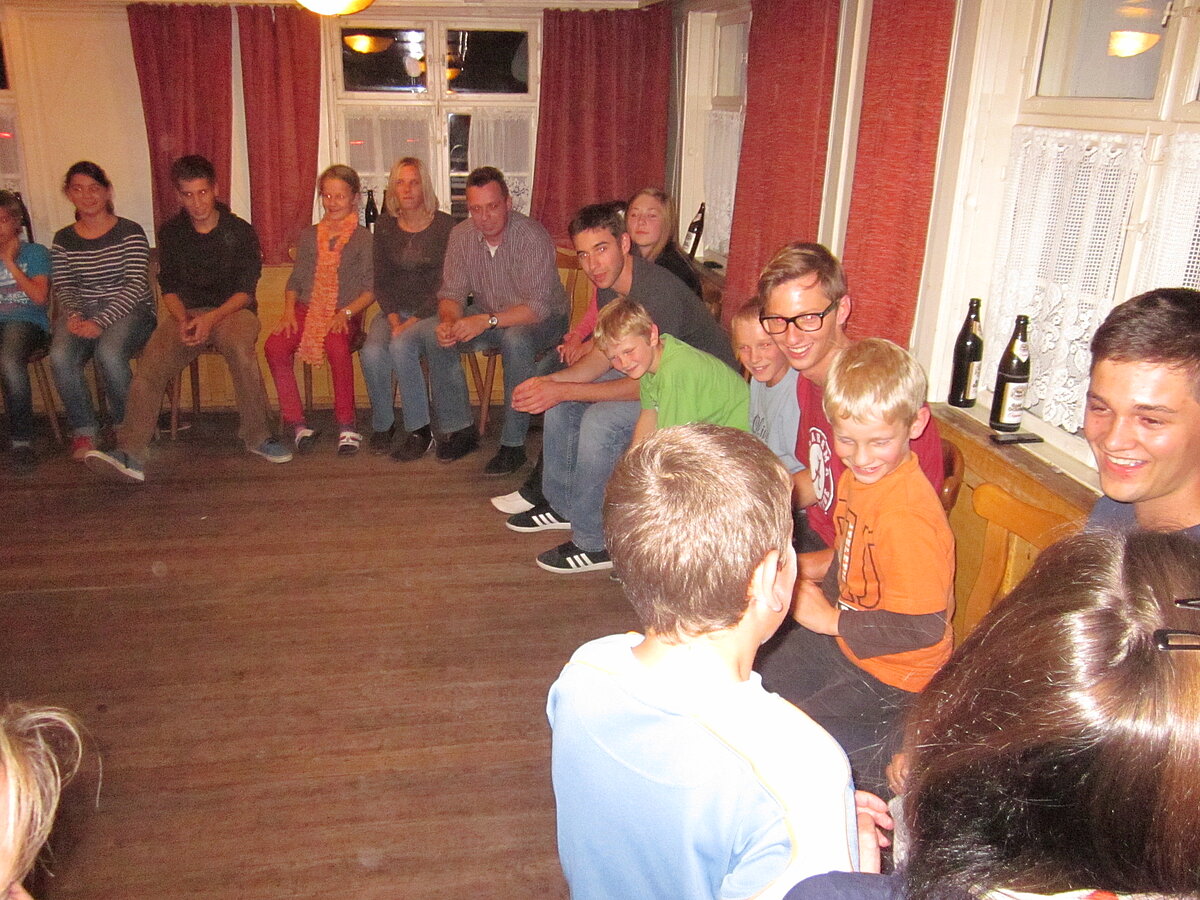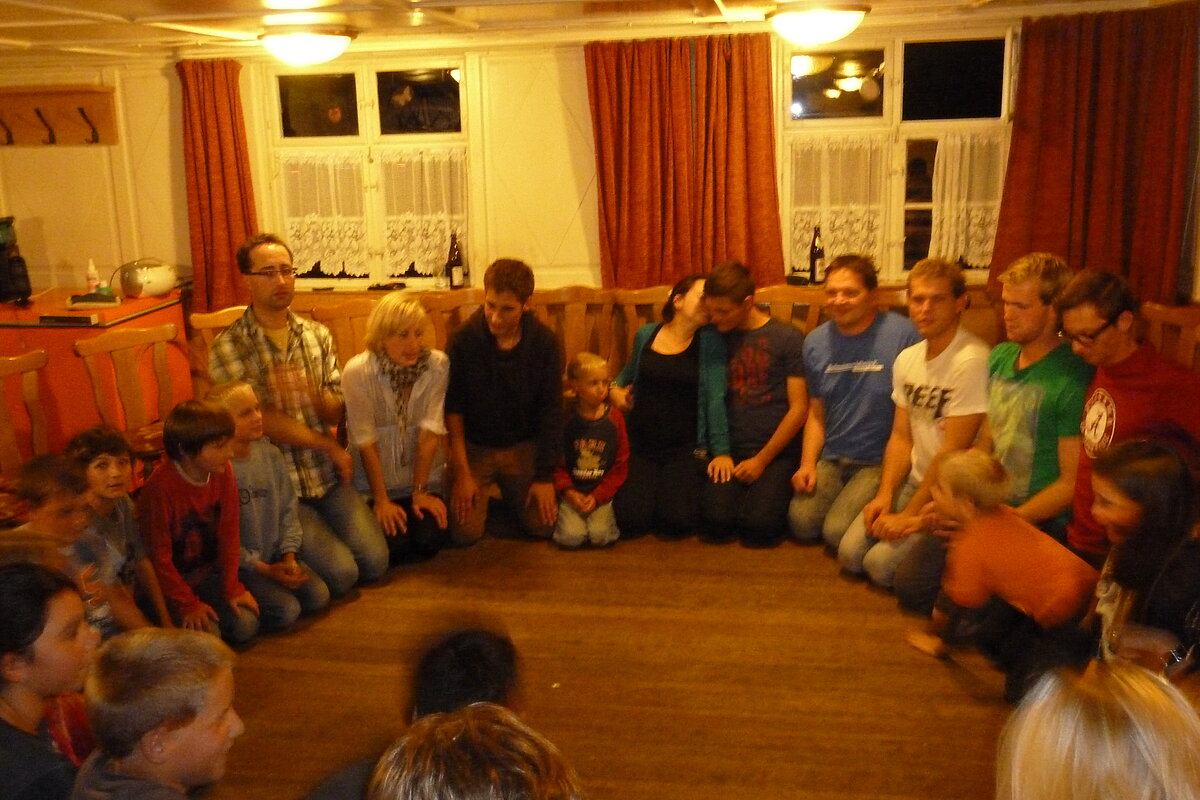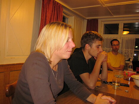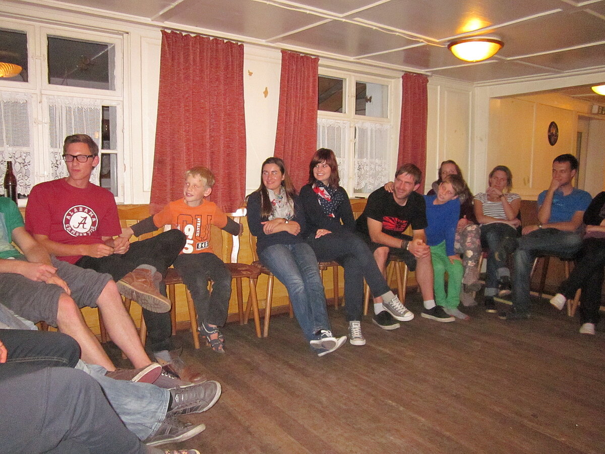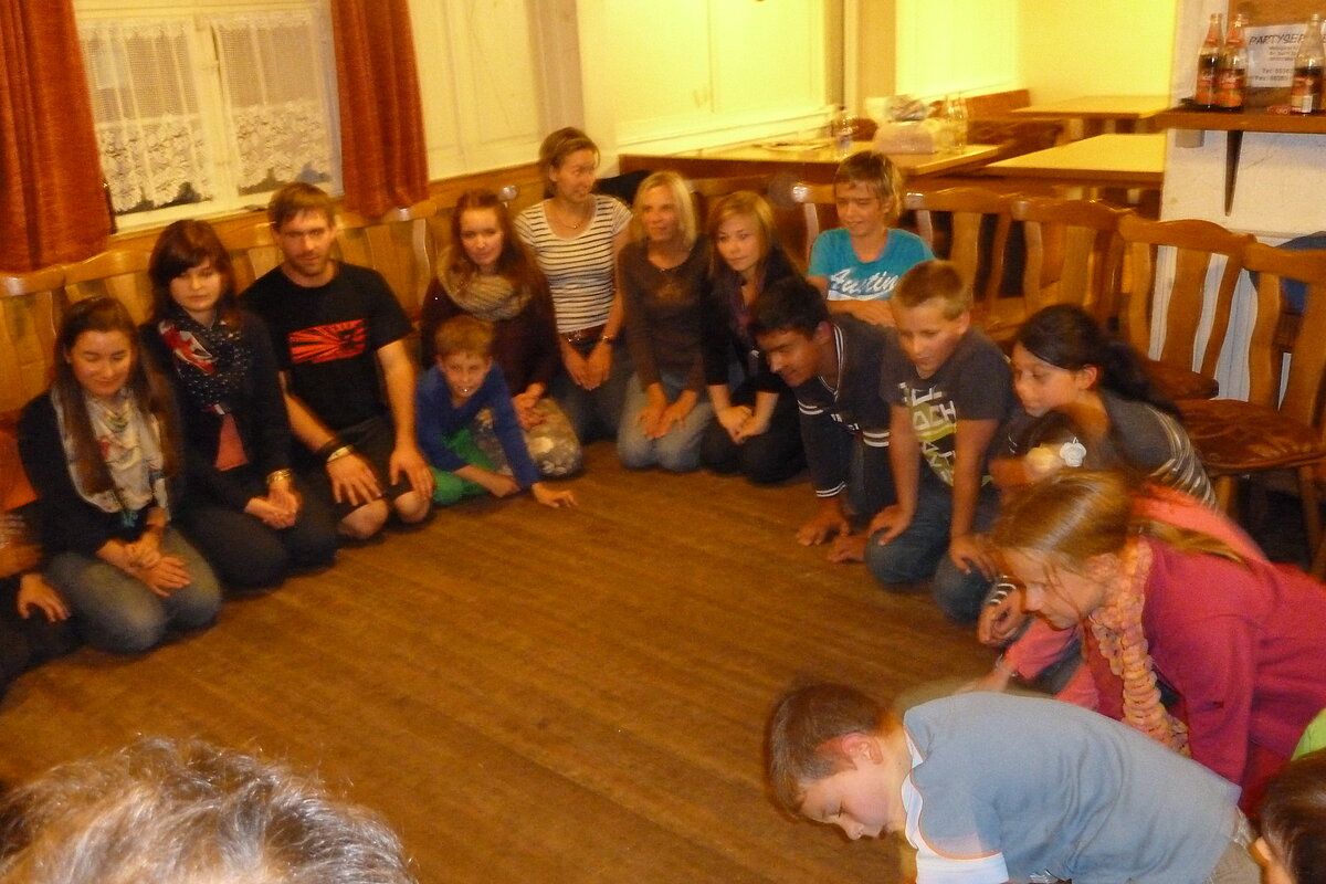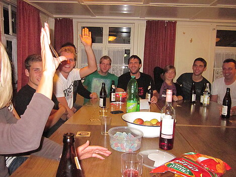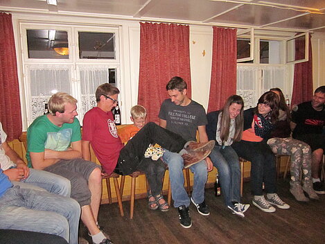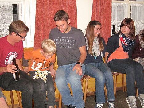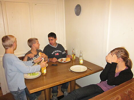 Während nach der Ankunft in den oberen Stockwerken und ums Haus herum sich eingelebt und gespielt wurde, begannen in der Küche sogleich die Vorbereitungen fürs Abendessen. Der erste Abend stand ganz im Zeichen des gegenseitigen Kennenlernens. Mit lustigen Spielen war sich bald niemand mehr fremd.