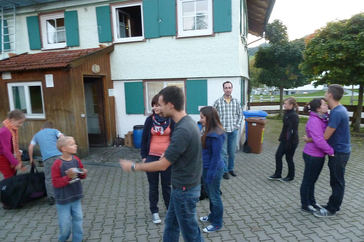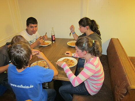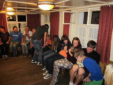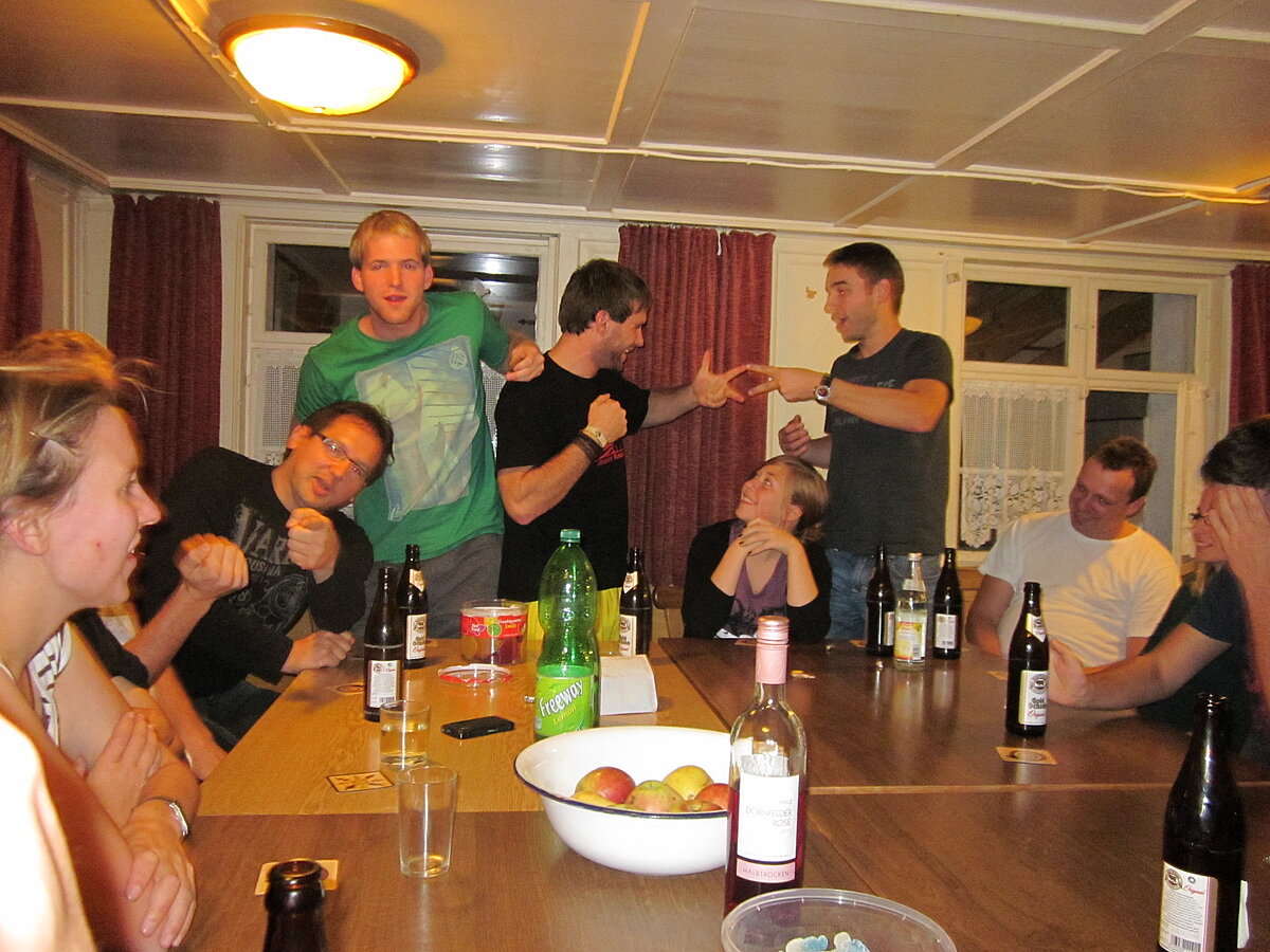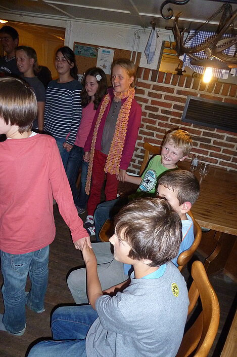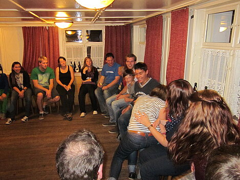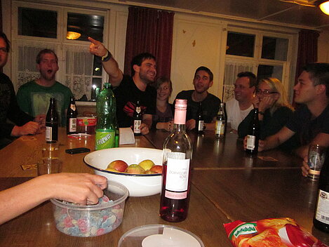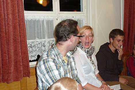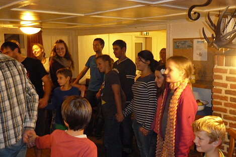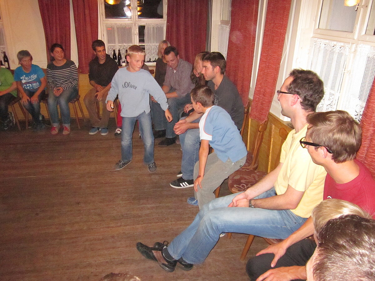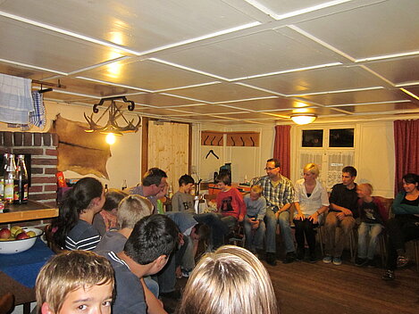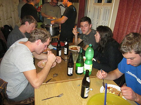Während nach der Ankunft in den oberen Stockwerken und ums Haus herum sich eingelebt und gespielt wurde, begannen in der Küche sogleich die Vorbereitungen fürs Abendessen. Der erste Abend stand ganz im Zeichen des gegenseitigen Kennenlernens. Mit lustigen Spielen war sich bald niemand mehr fremd.