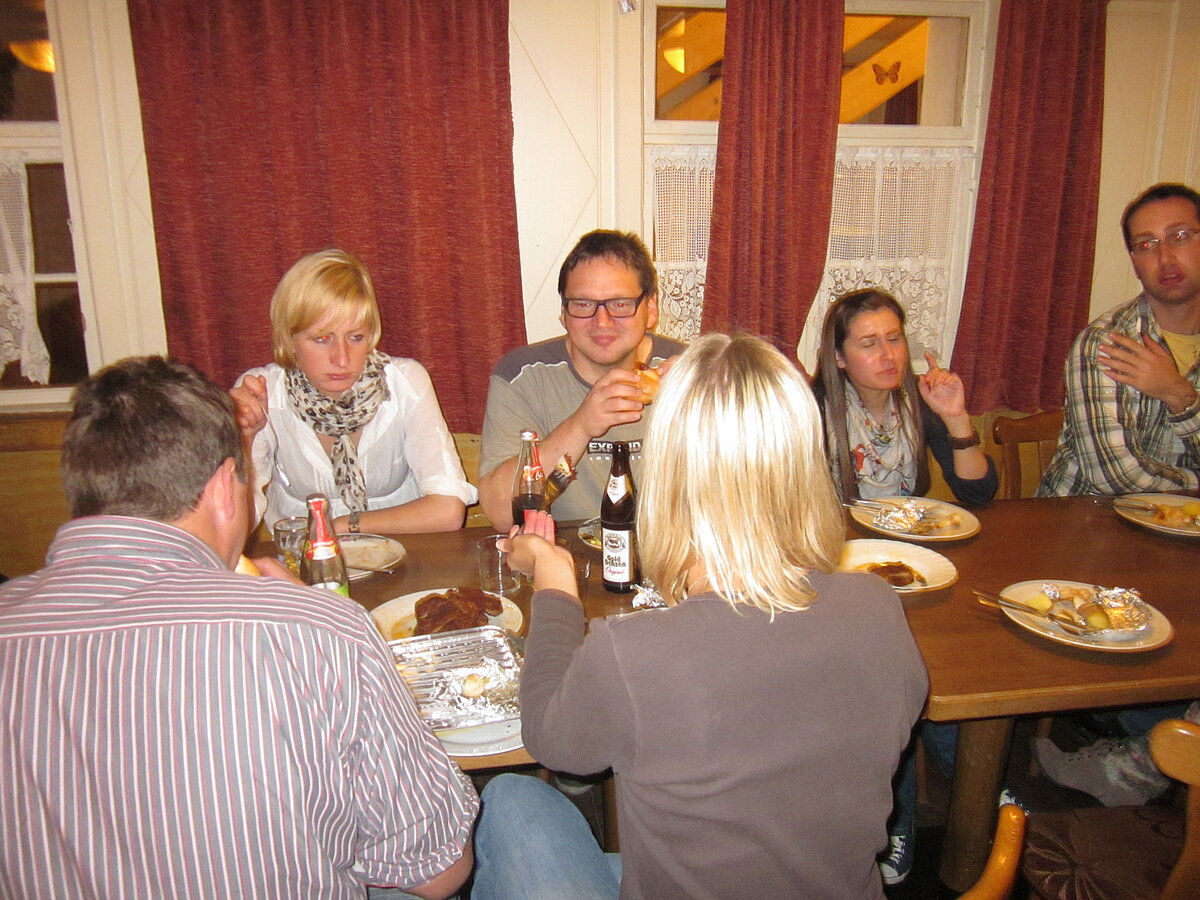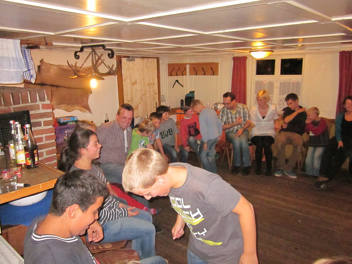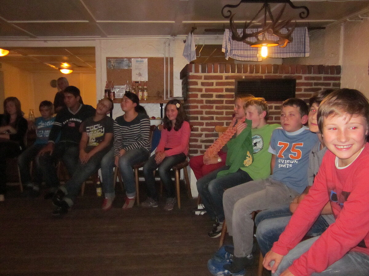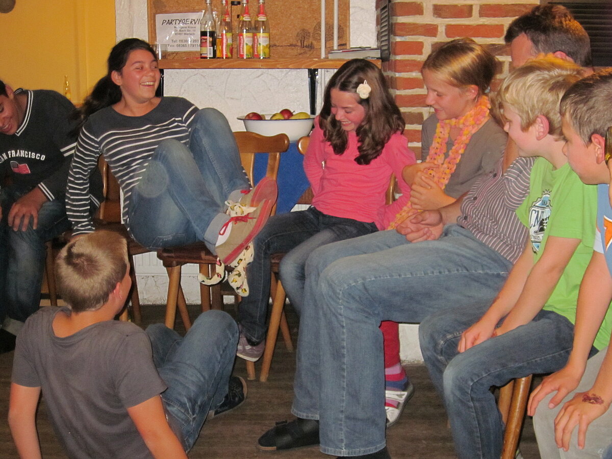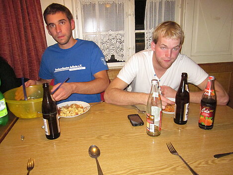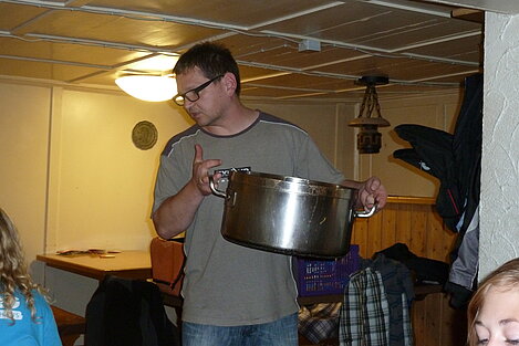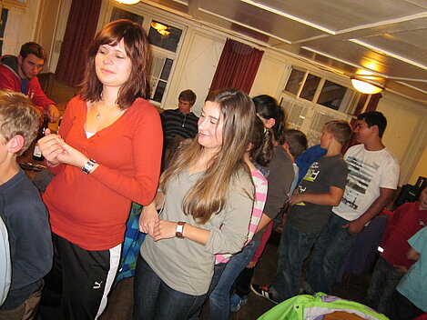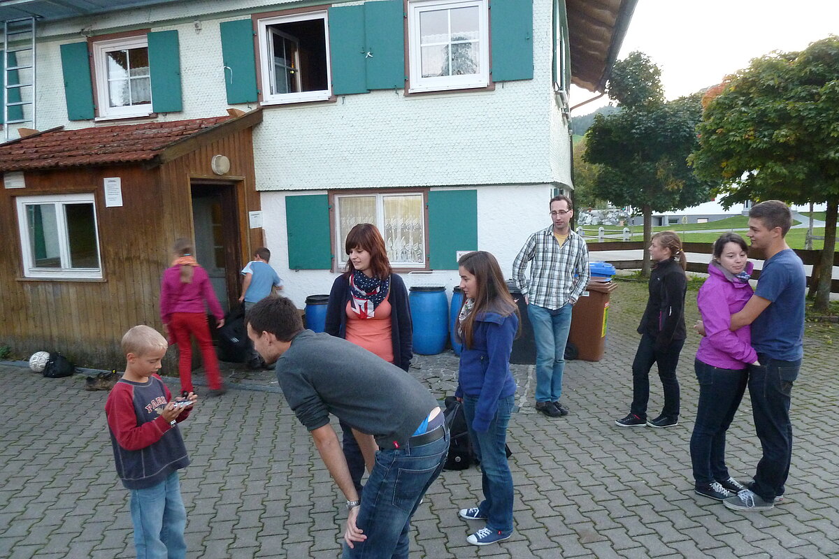 Während nach der Ankunft in den oberen Stockwerken und ums Haus herum sich eingelebt und gespielt wurde, begannen in der Küche sogleich die Vorbereitungen fürs Abendessen. Der erste Abend stand ganz im Zeichen des gegenseitigen Kennenlernens. Mit lustigen Spielen war sich bald niemand mehr fremd.