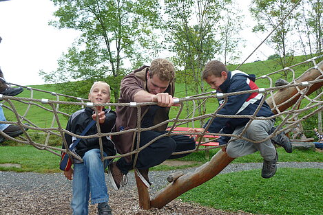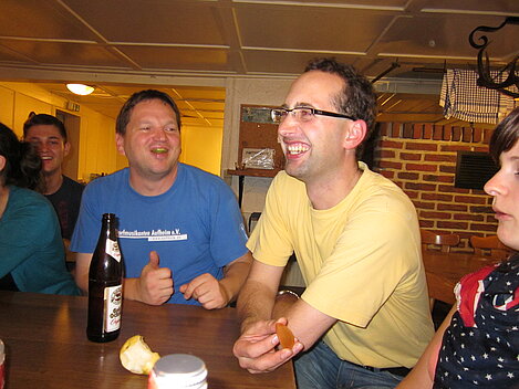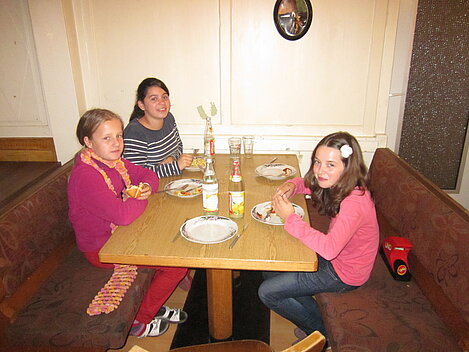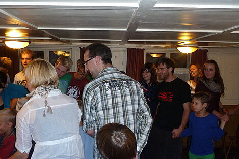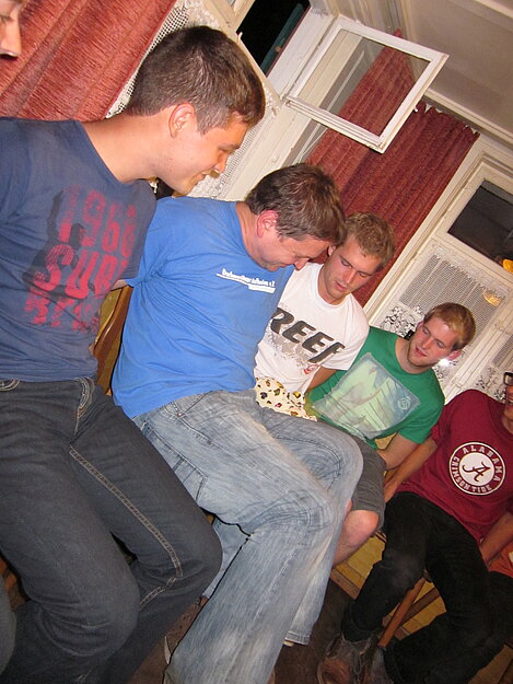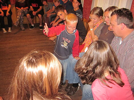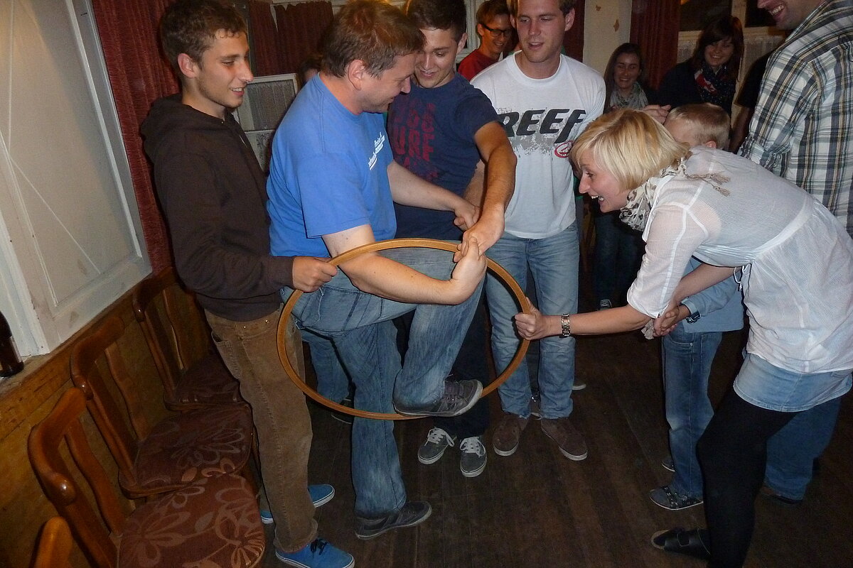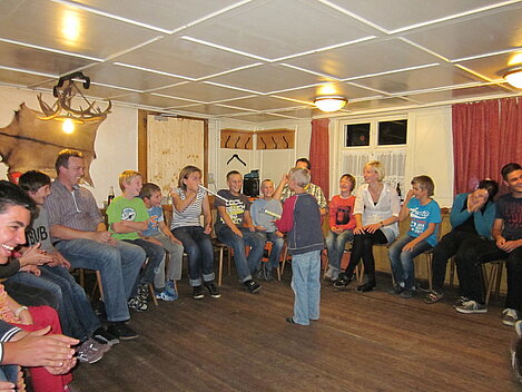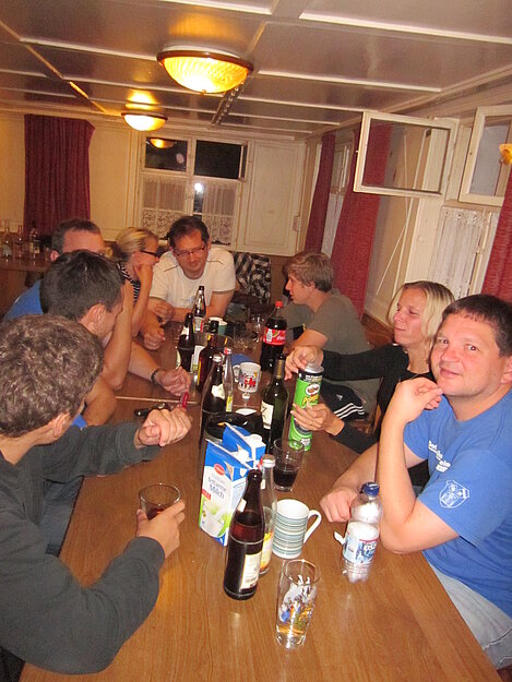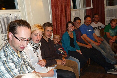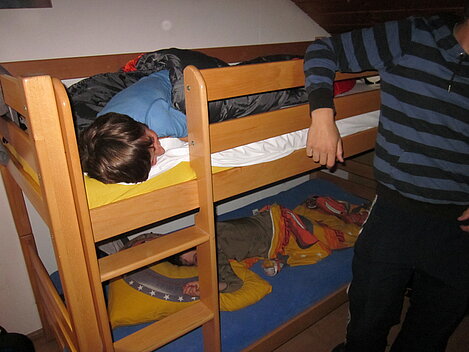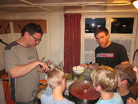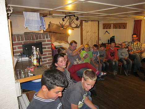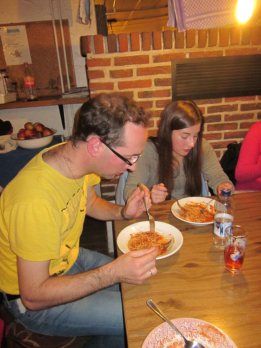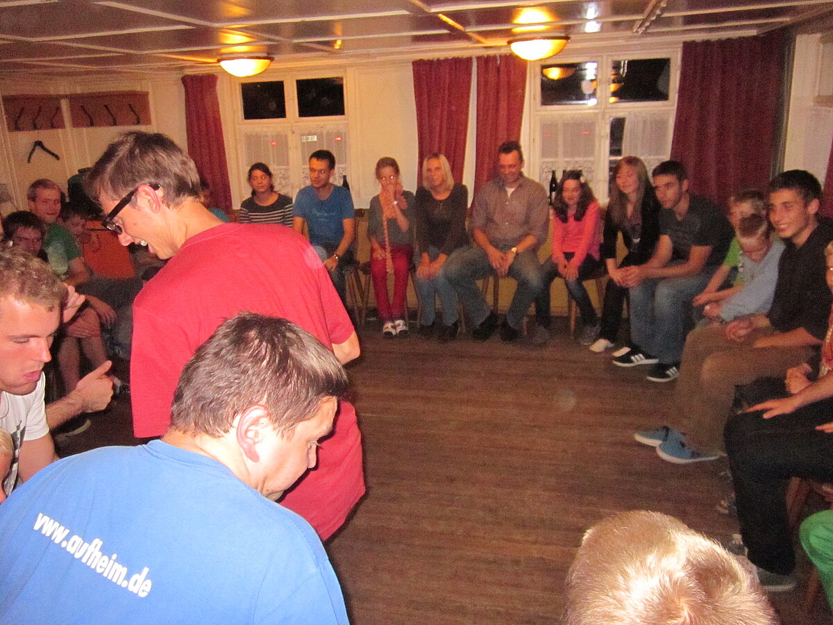Während nach der Ankunft in den oberen Stockwerken und ums Haus herum sich eingelebt und gespielt wurde, begannen in der Küche sogleich die Vorbereitungen fürs Abendessen. Der erste Abend stand ganz im Zeichen des gegenseitigen Kennenlernens. Mit lustigen Spielen war sich bald niemand mehr fremd.