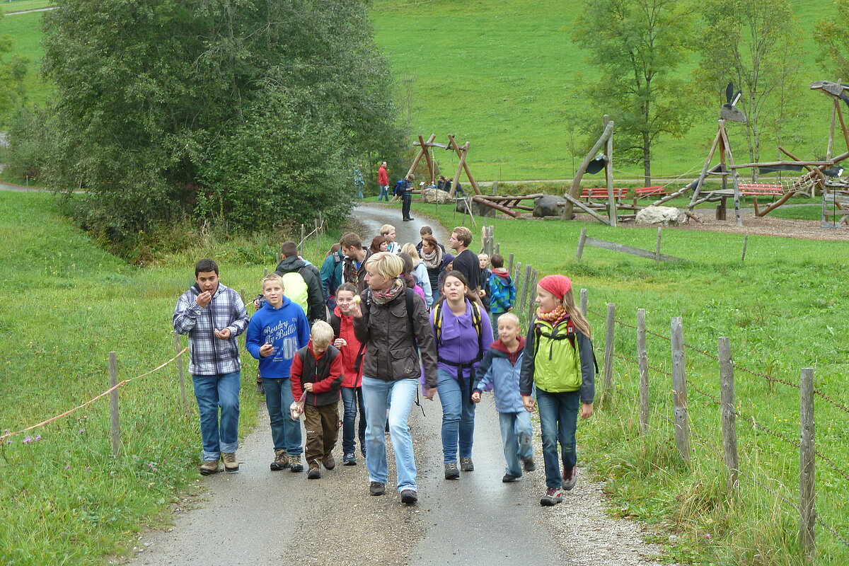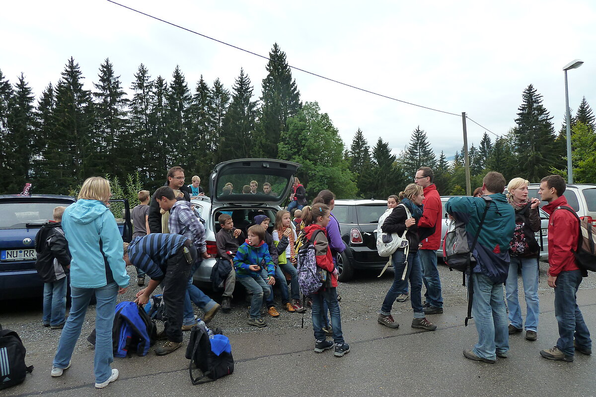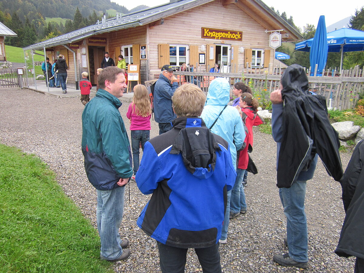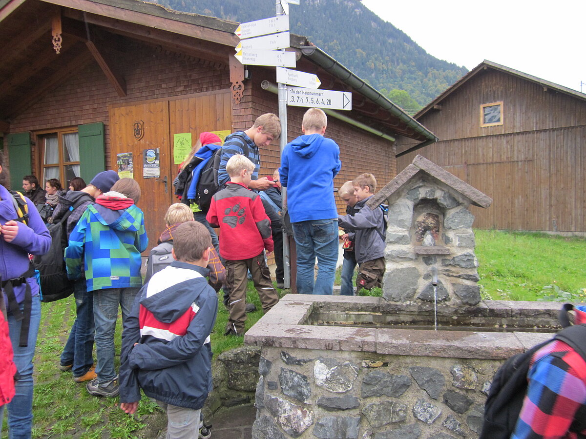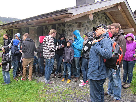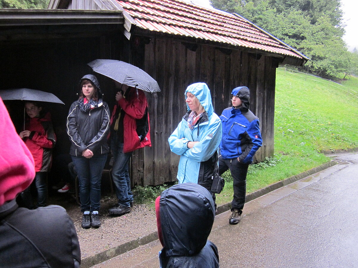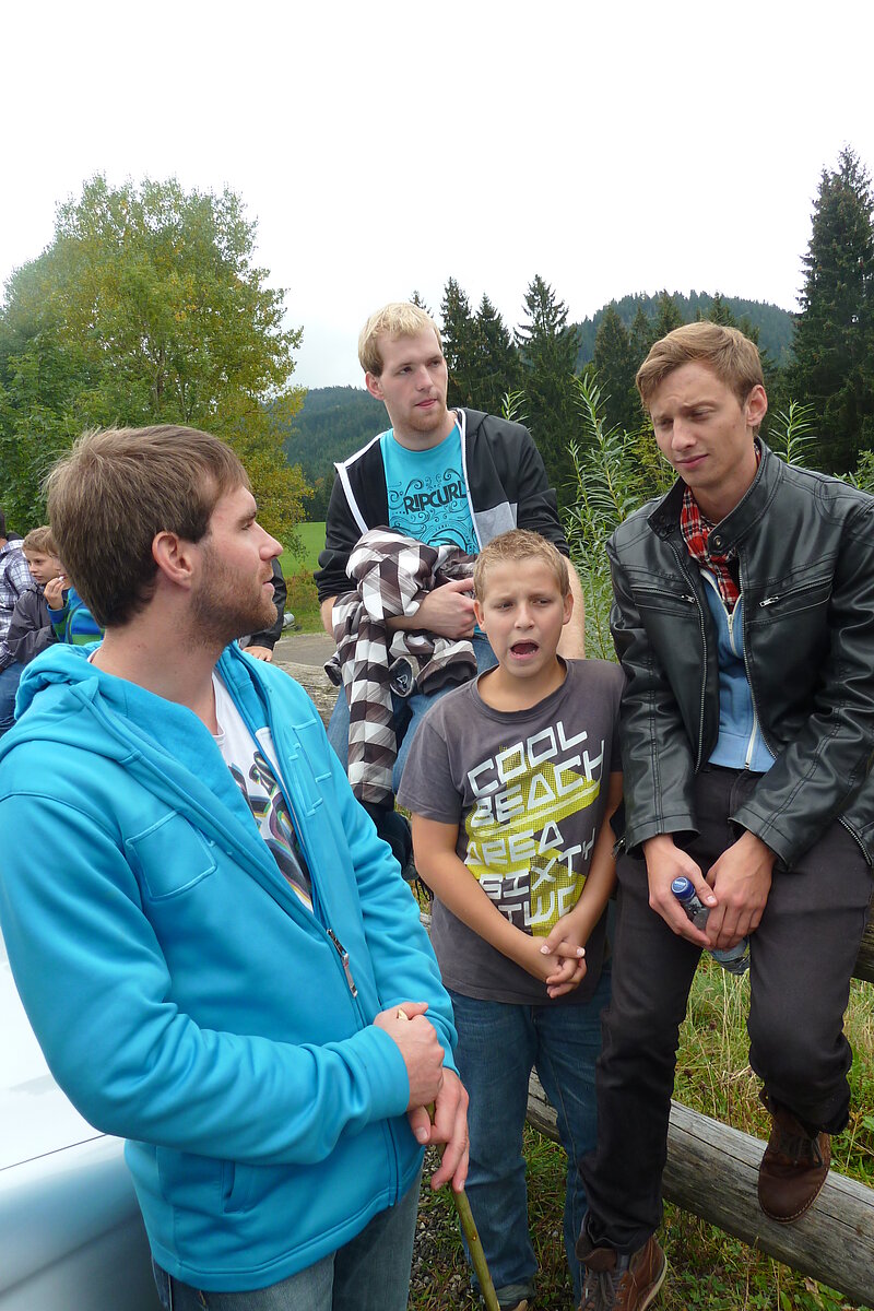 Der zweite Tag war Wandertag :-) Trotz des trüben und später sogar regnerischen Wetters wurde der Breitenberg und Grünten bewandert und als Höhepunkt dessen alte Eisen-Erzgruben erforscht. Der eine oder andere hatte sogar dabei seine Sohlen auf den Schuhen verloren, andere mussten fortwährend motiviert und bei Laune gehalten werden. Aber alle haben tapfer durchgehalten! Durchnässt und müde wurde Abends von den "Bewohnern des Düsterwalds" der Werwolf in den eigenen Reihen gesucht. Oder Fussball gespielt... Sonntag war Abreisetag. Die Zimmer und Hütte mussten gemeinsam wieder in den Urzustand versetzt werden. Auf der Heimfahrt wurde das Erlebte mit leuchtenden Augen nochmals erzählt.