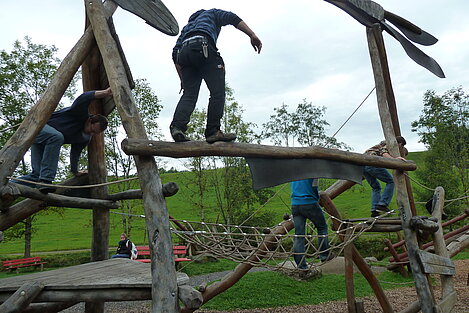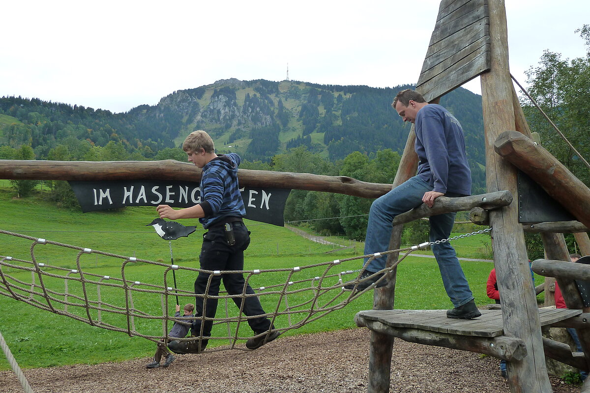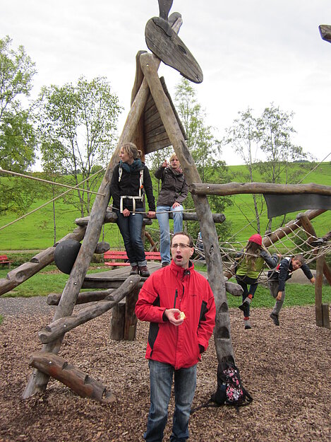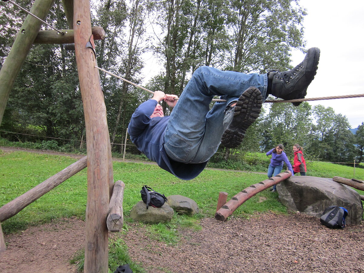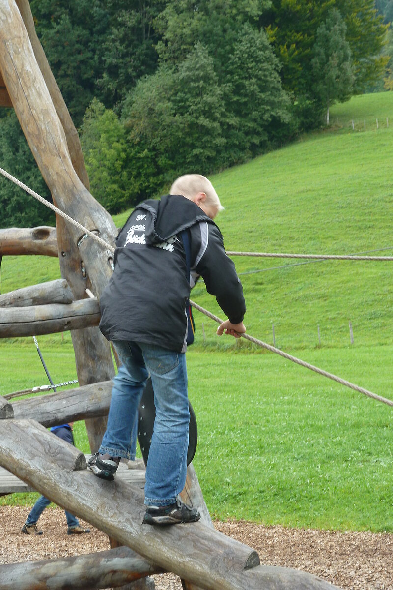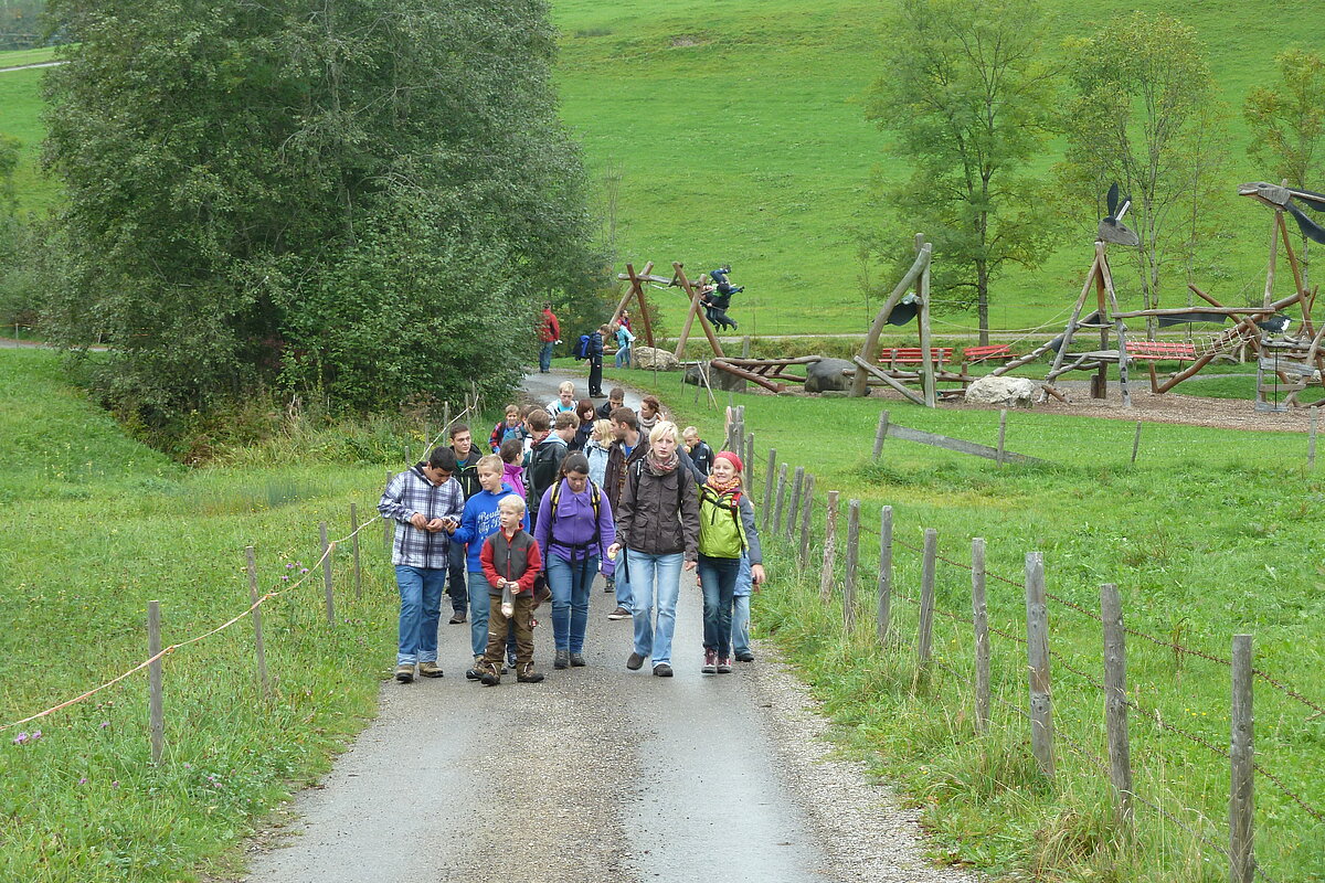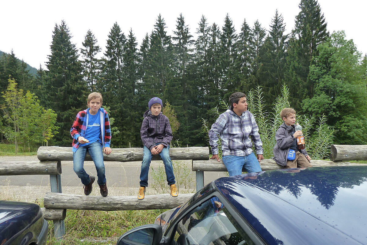 Der zweite Tag war Wandertag :-) Trotz des trüben und später sogar regnerischen Wetters wurde der Breitenberg und Grünten bewandert und als Höhepunkt dessen alte Eisen-Erzgruben erforscht. Der eine oder andere hatte sogar dabei seine Sohlen auf den Schuhen verloren, andere mussten fortwährend motiviert und bei Laune gehalten werden. Aber alle haben tapfer durchgehalten! Durchnässt und müde wurde Abends von den "Bewohnern des Düsterwalds" der Werwolf in den eigenen Reihen gesucht. Oder Fussball gespielt... Sonntag war Abreisetag. Die Zimmer und Hütte mussten gemeinsam wieder in den Urzustand versetzt werden. Auf der Heimfahrt wurde das Erlebte mit leuchtenden Augen nochmals erzählt.